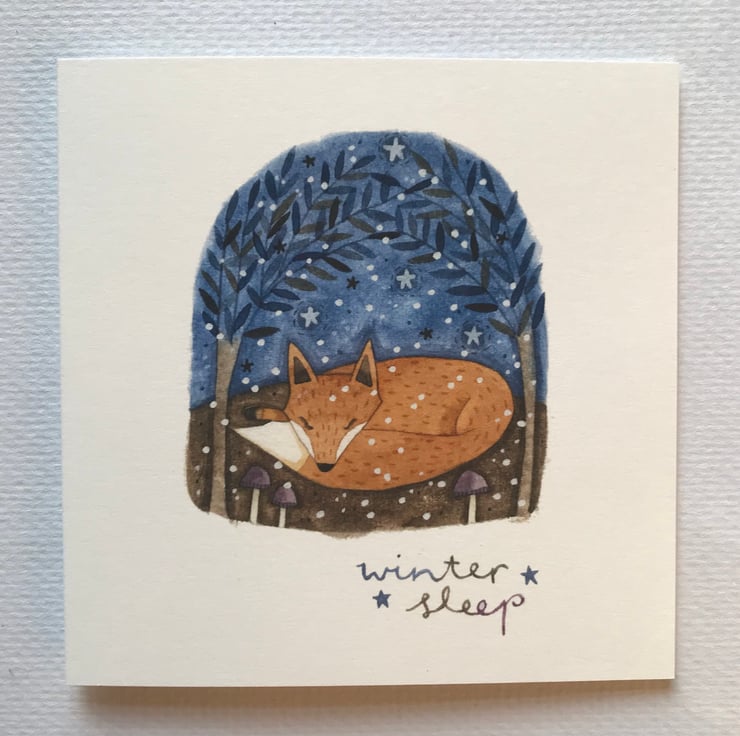 A 125mm square card taken from an original artwork by Three Acorns and supplied with envelope. This card is suitable for Christmas or Winter birthday and is blank inside.