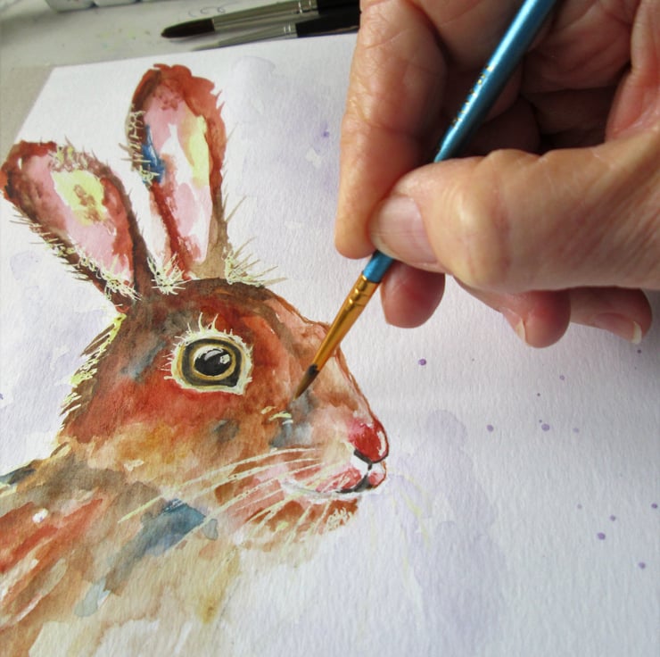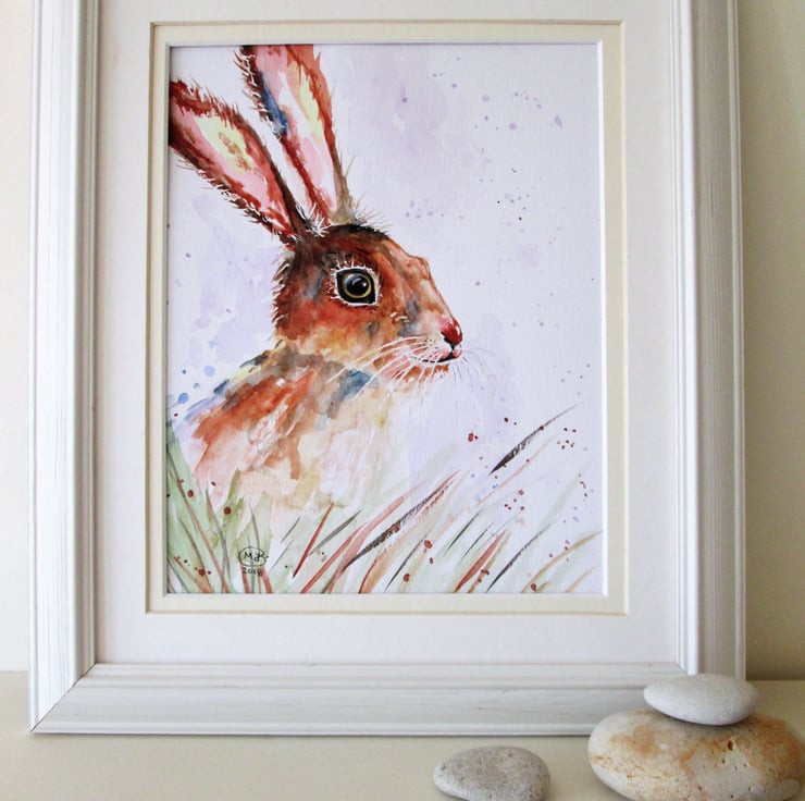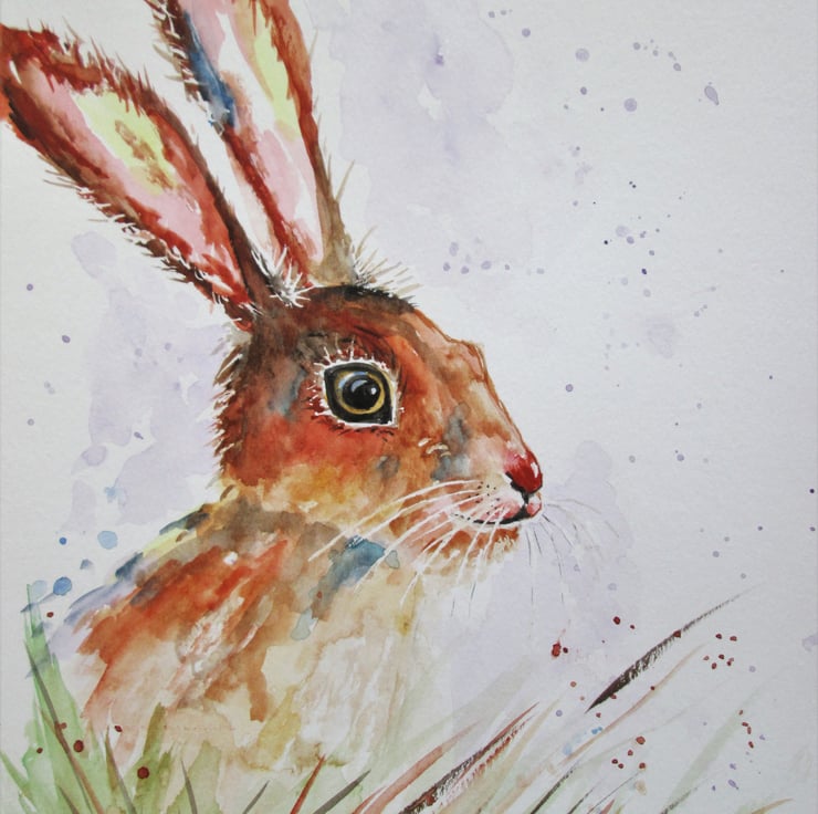 A cute hare with a lovely eye original watercolour painting on quality paper.