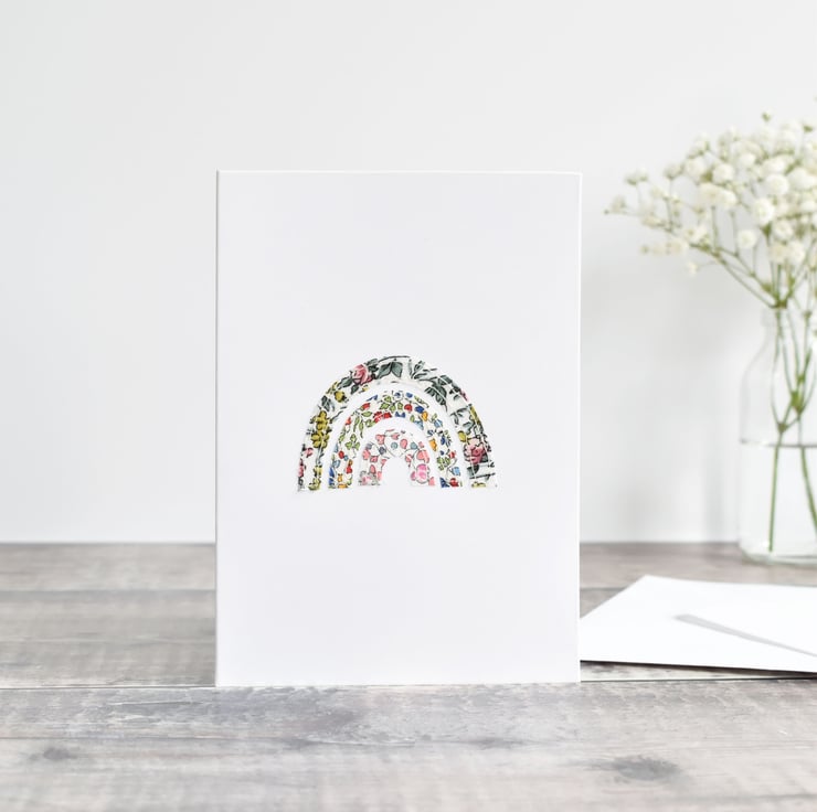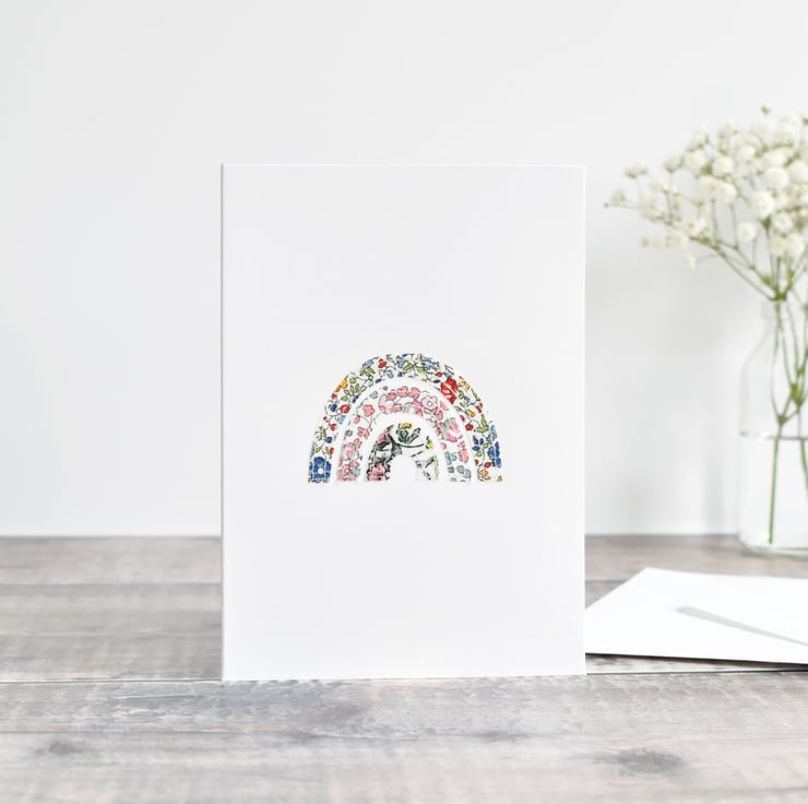 Made using pretty floral Liberty fabric stitched directly onto the front of the card using freehand machine embroidery.