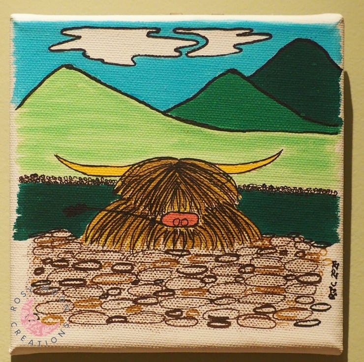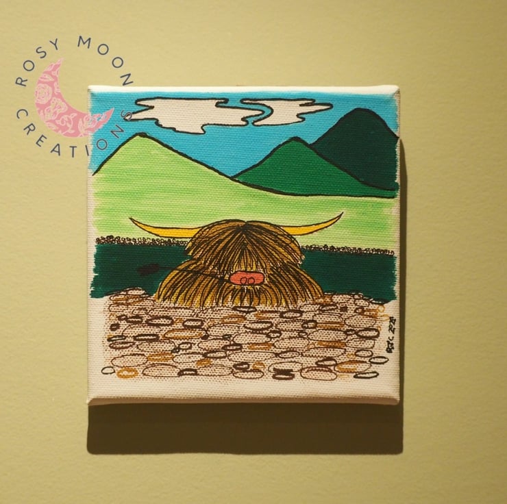 I have so much love for the fluffy cow that I had to put her onto her own canvas. She will brighten up any room with her warm personality.