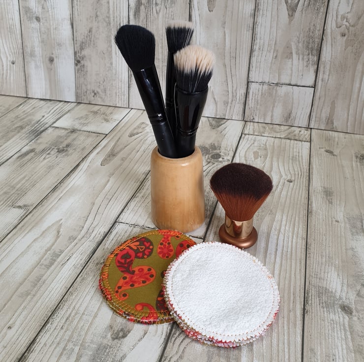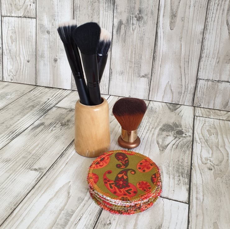 Perfect for use with cleanser, face wash, soap, toner or simply water. The rounds are 100% cotton towelling backed with pretty cotton fabric in Autumnal shades of forest green and orange. They are super soft and very absorbent.
