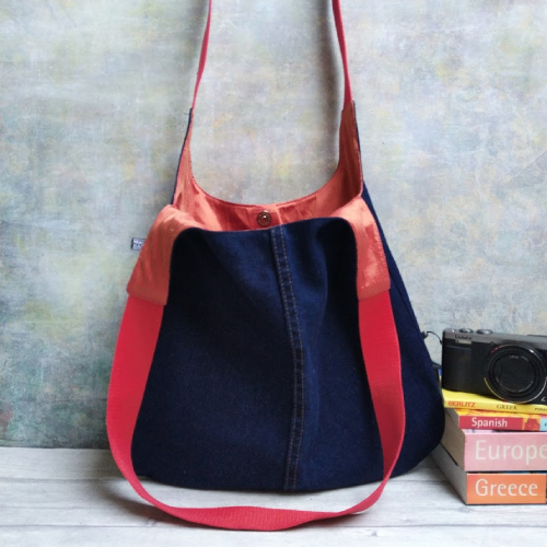 Boho vibes with a touch of luxury, this repurposed denim hobo bag has been lined with a gorgeous russet coloured silk lining. Two shoulder straps fit comfortably over the shoulder and perfectly compliment the lining - they make a fantastic pop of colour.