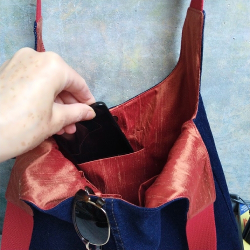 Made using good quality repurposed denim and excess new silk from soft furnishing company which would have otherwise gone to waste.