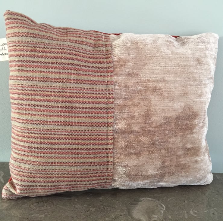 Inspired by the Isle of Portland, this hand printed dream sleep pillow has been lovingly made using leftover fabric samples from the upholstery trade. Each pillow is unique.