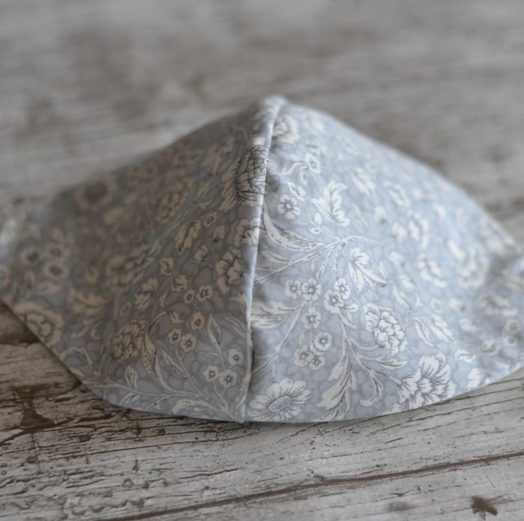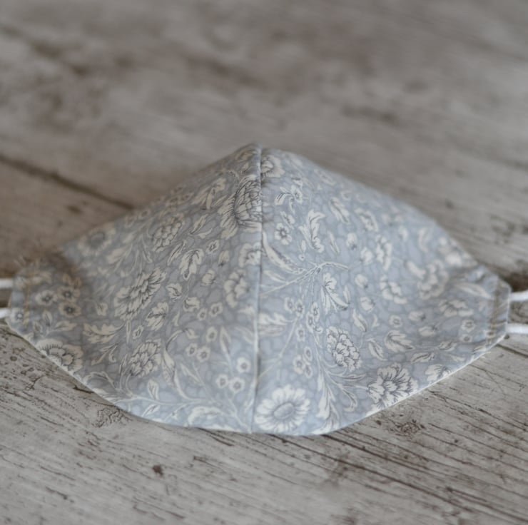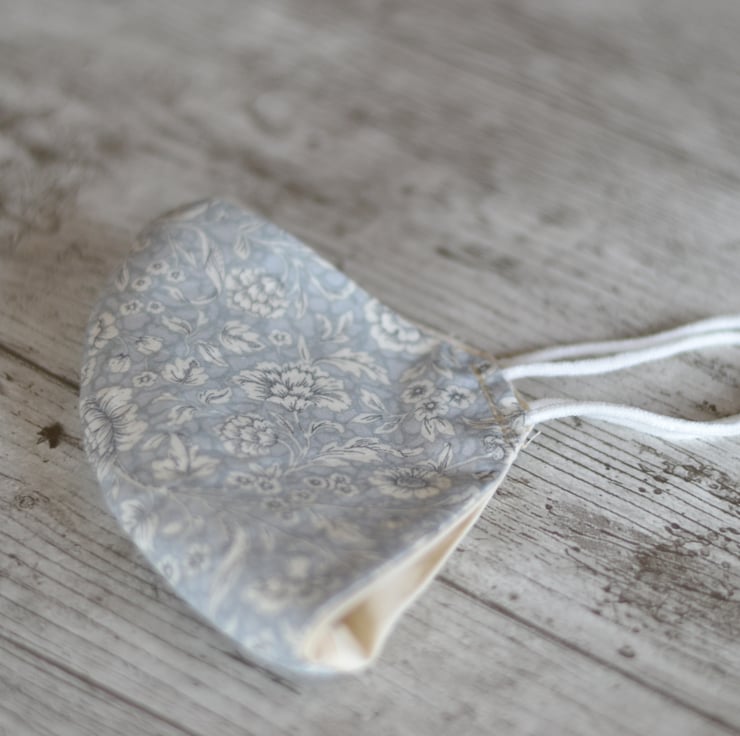 Light grey flower or light grey polka dot face mask choose your mask from the dropdown menu.100% cotton 2 layer mask fabric with cream lining. Soft elastic which doesn't hurt the ears.
