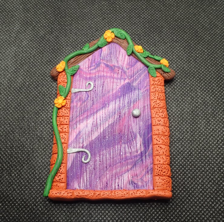 Each door is unique created from scratch without a mould and with its own features, plants and colours. I can also take commissions to create doors with specific colours, shape and decoration. Just message me for more details.