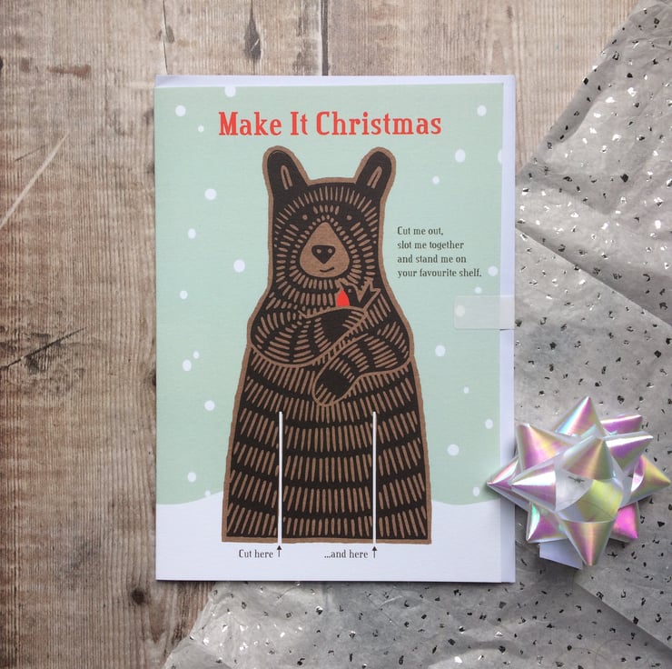 Here's a Christmas card they'll hopefully keep and a mini activity for Christmas Day! Cut out the shapes and assemble little Brown Bear by slotting together, no glue required. This A5 card is printed on FSC certified card and comes with a white envelope. It’s packaged without a plastic wrapper so it's eco-friendly too. Put him on a shelf or fireplace and he's sure to bring some seasonal cheer. You can buy his companion Polar Bear card too for a Beary Merry Christmas!