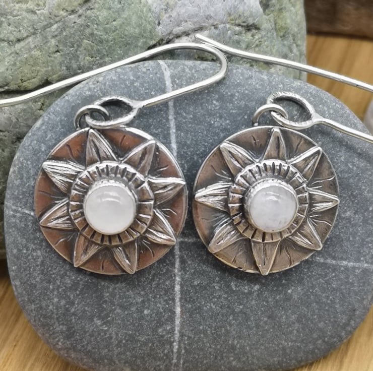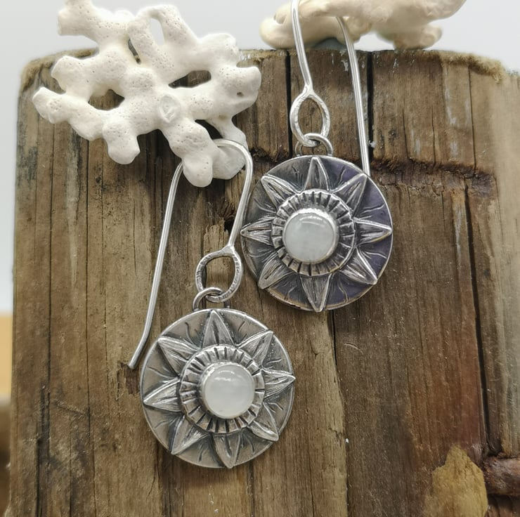 Handmade by me, in sterling silver, including ear wires, these lovely drop earrings measure approx 16mm across each disc.