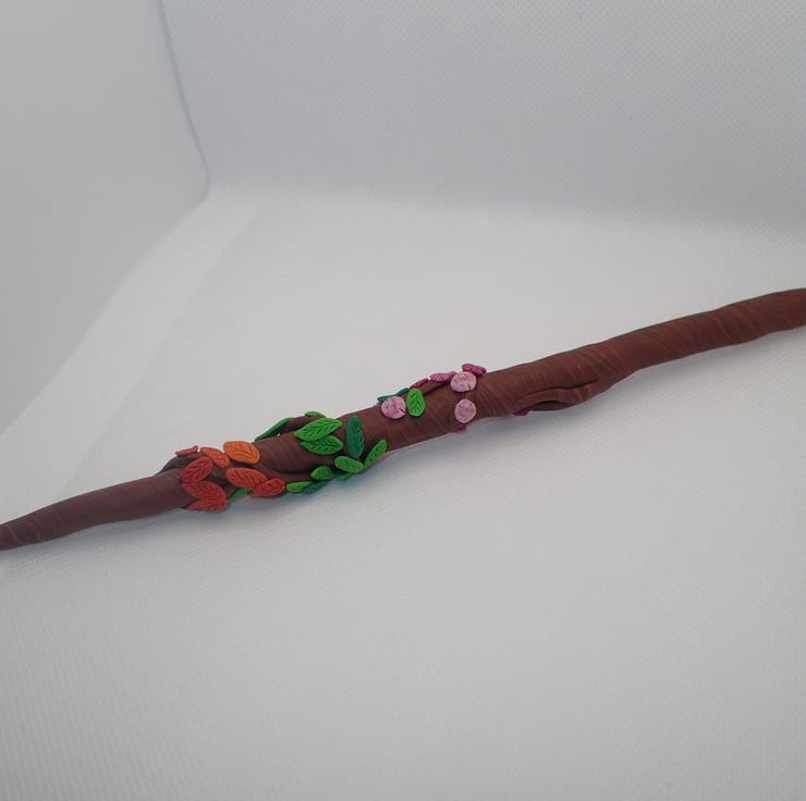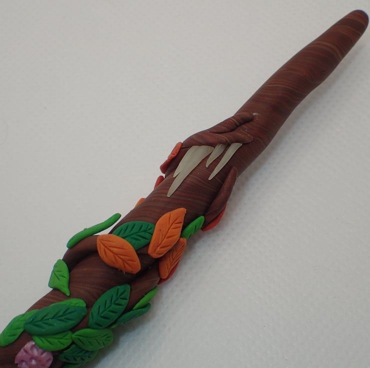 Each magic wand is unique created from scratch without a mould and with its own features and primary element. I can also take commissions to create wands with specific colours, shape and decoration. Just message me for more details.