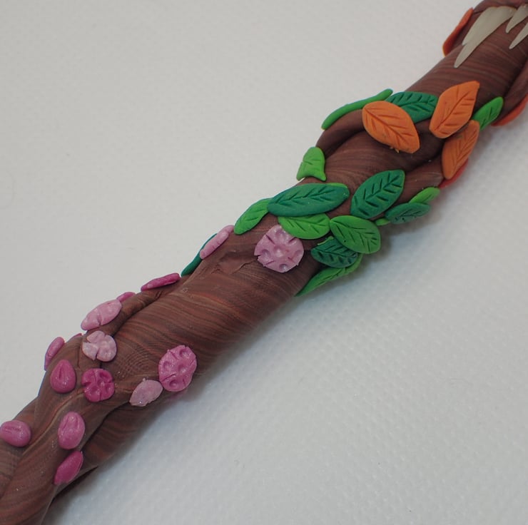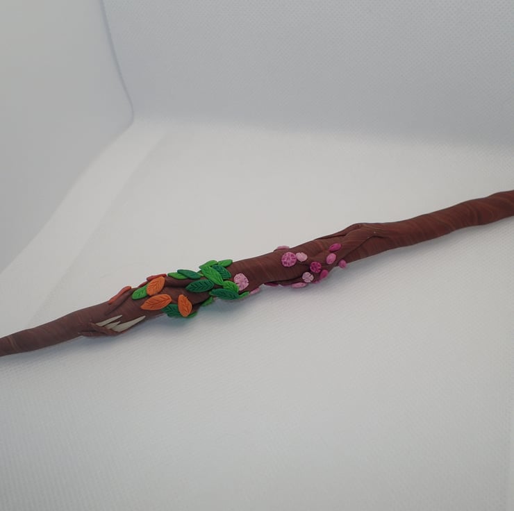 This unique magic wand can control the seasons, with decoration from spring (buds and blossom), summer (leaves), autumn (autumn leaves) and winter (icicles). It is 25cm long and 2 cm wide.