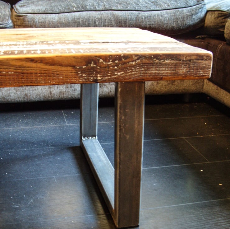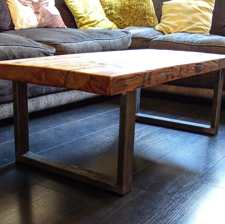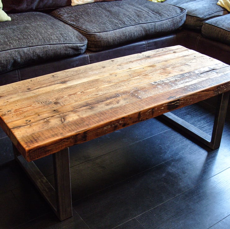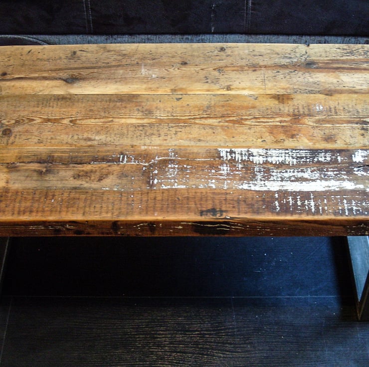 A beautiful coffee table made from reclaimed chunky scaffold boards.