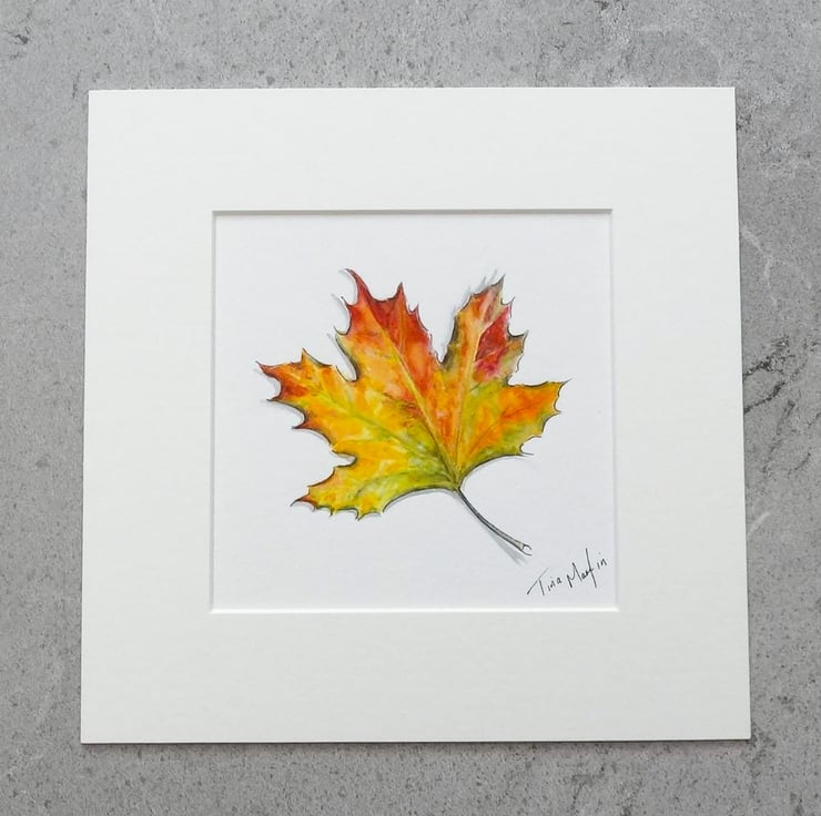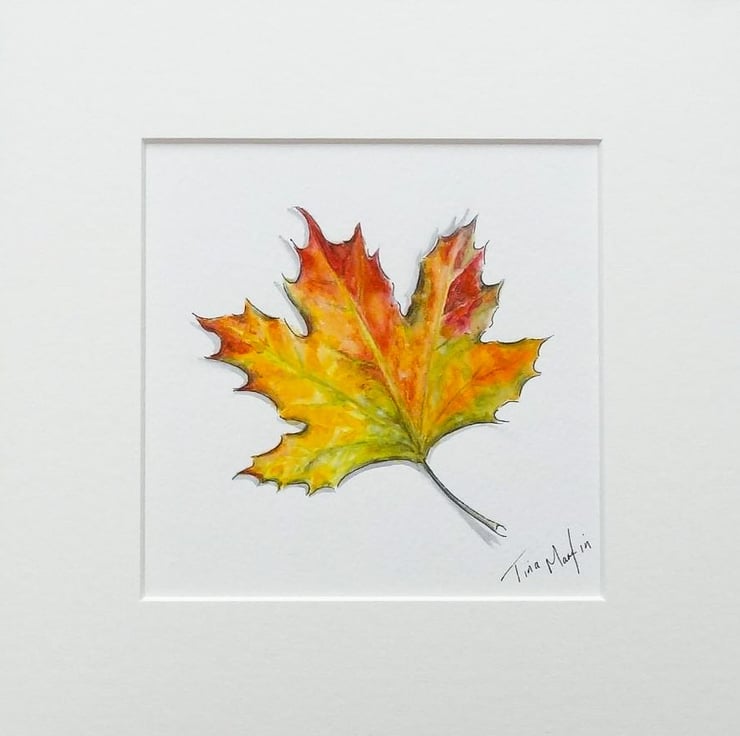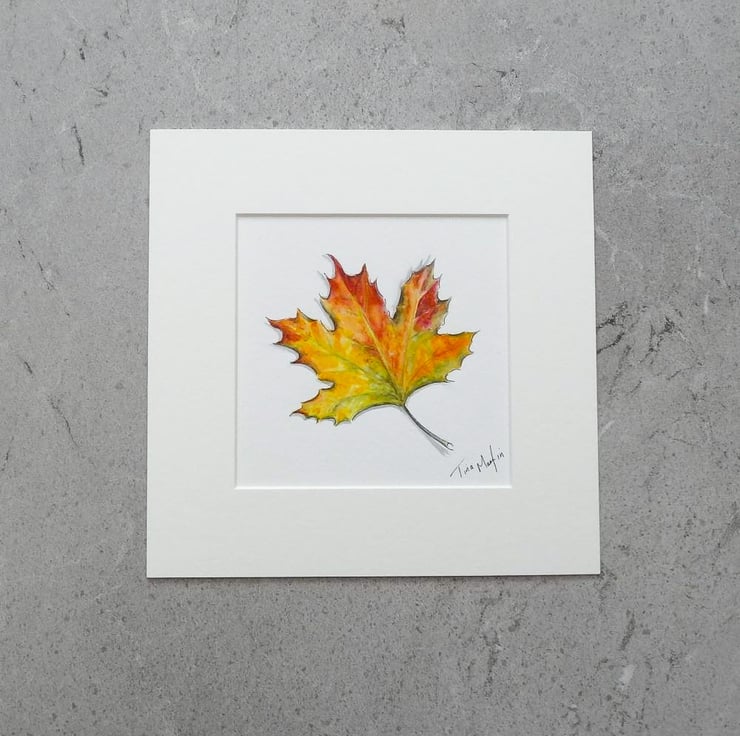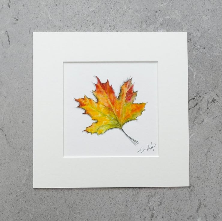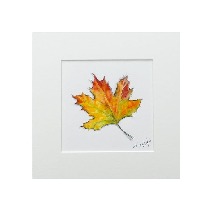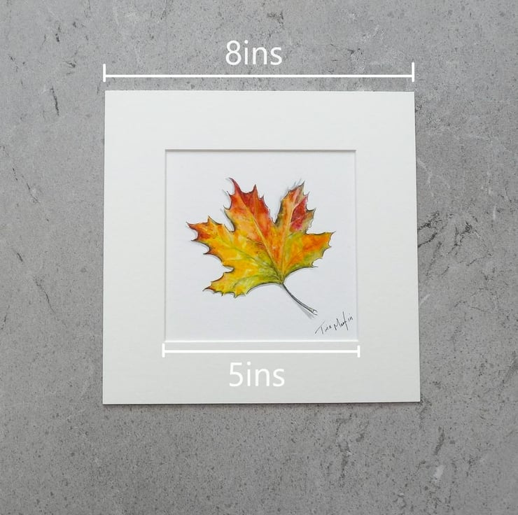 This small original artwork 'Autumn Leaf' comes with a quality soft white mount and backing board ready for framing. It has been painted using quality paints on 300gm acid free cold pressed watercolour paper and comes with a Certificate of Authenticity.