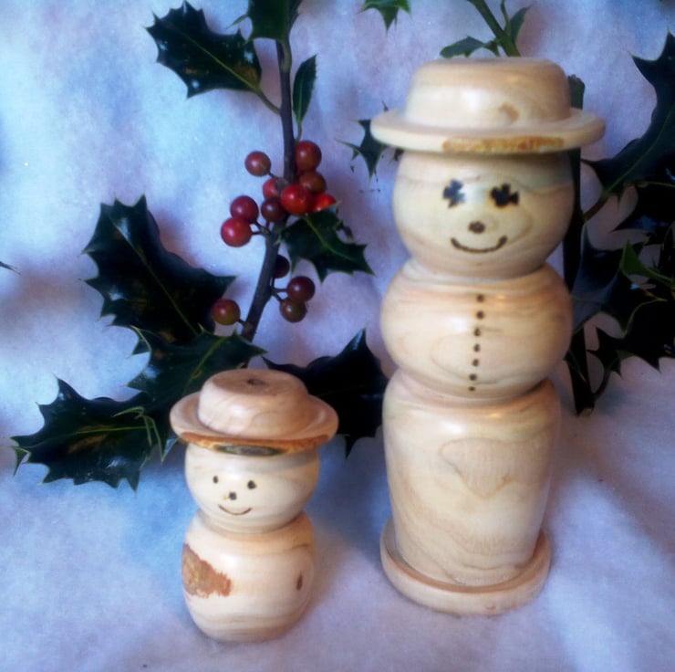 Large snowman 15cm tall, Mum 12cm tall and Child 6cm tall.