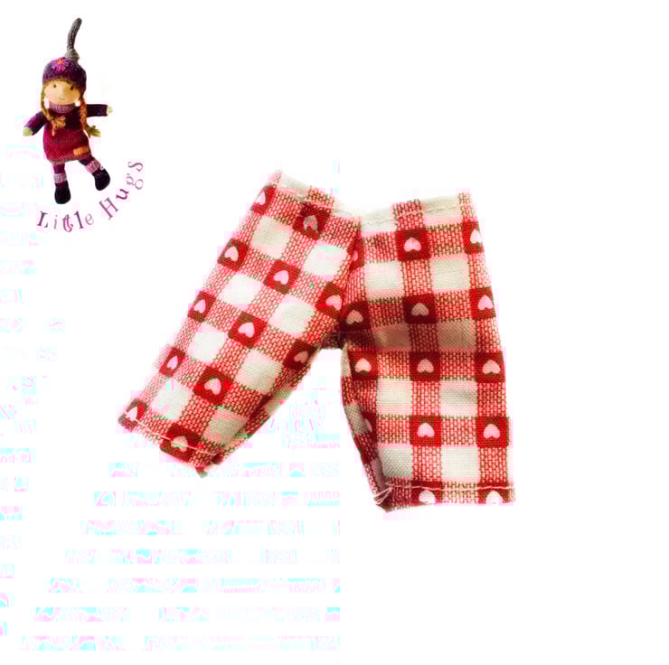 A cute little pair of cotton trousers made to fit the Little Hugs dolls. They are made from best quality cotton and go well with the little jumpers.