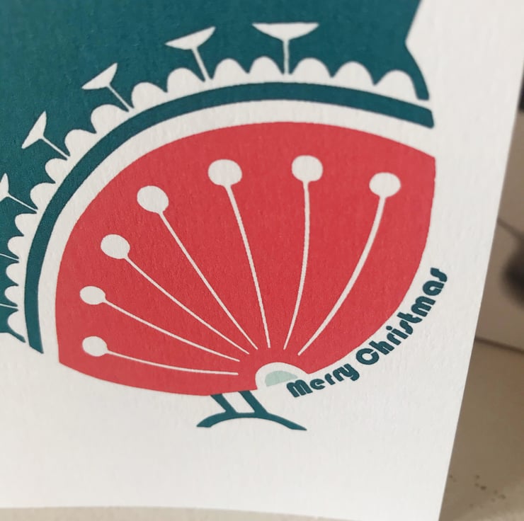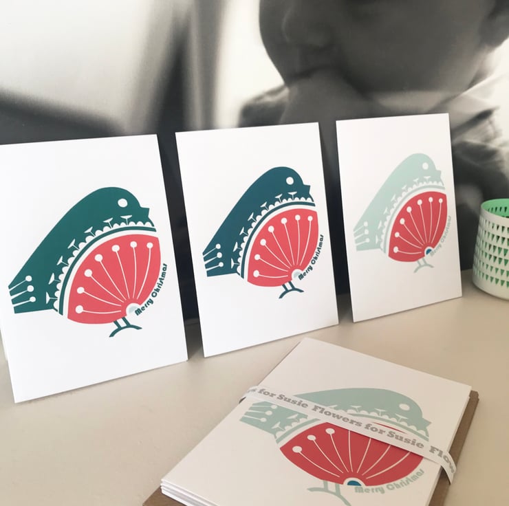 I love Scandinavian & mid century print and colour and all my designs are influenced by this passion within a contemporary aesthetic. The fat robin was created after watching all the lovely fat robins in our garden. With their big fat red bellies and proud stance they are the perfect subject for my Christmas cards.