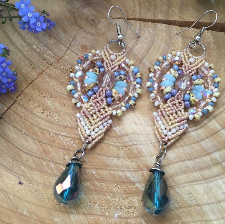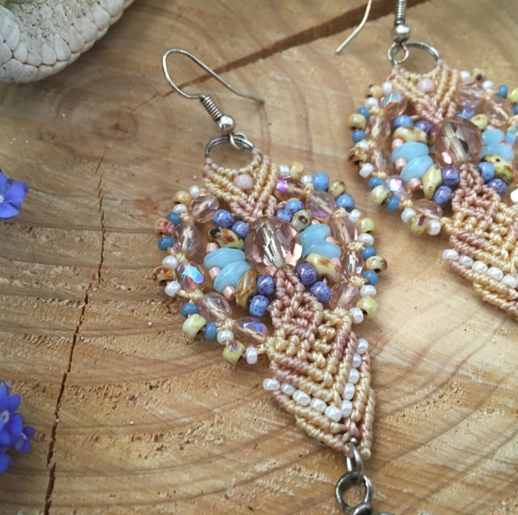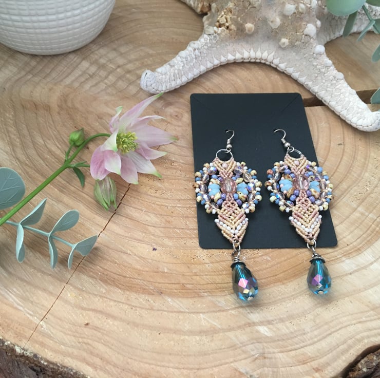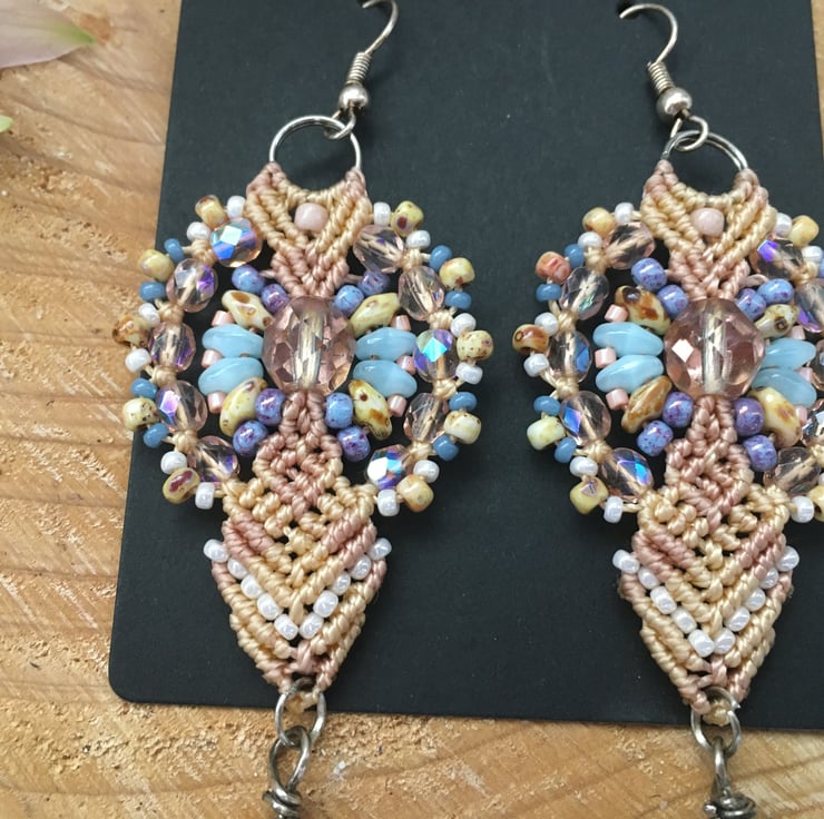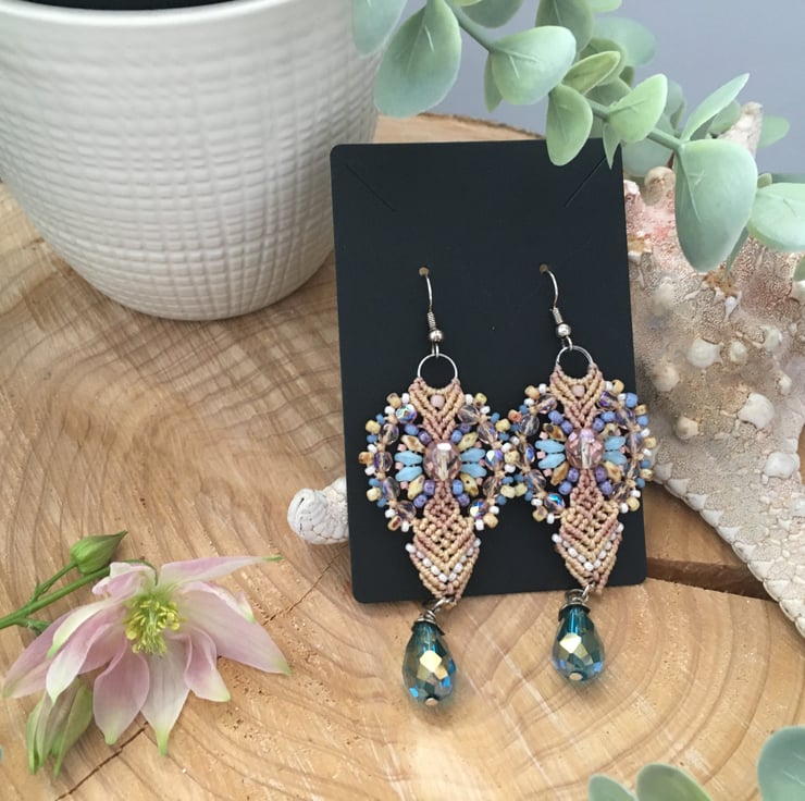 These beautiful hand made beaded earrings have been hand knotted using the delicate craft of Micro Macrame. They are super light weight and yet make a big statement. Perfect for the beach or party a real stand out unique design.
