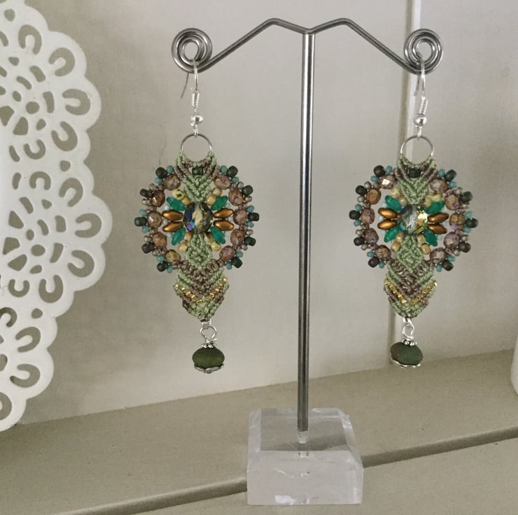 These beautiful hand made beaded earrings have been hand knotted using the delicate craft of Micro Macrame. They are super light weight and yet make a big statement. Perfect for the beach or party a real stand out unique design.