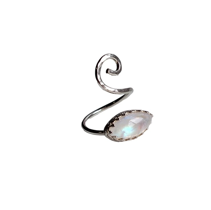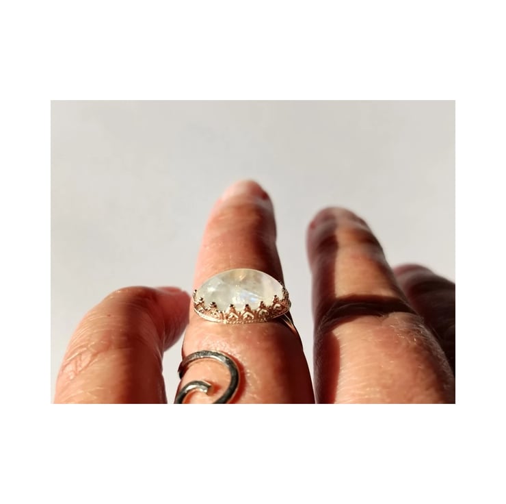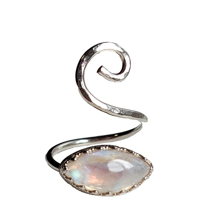 Moonstone marquise shaped stone set in 999 fine silver around the sides and backed with 925 sterling silver