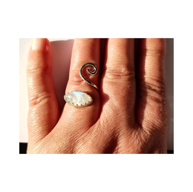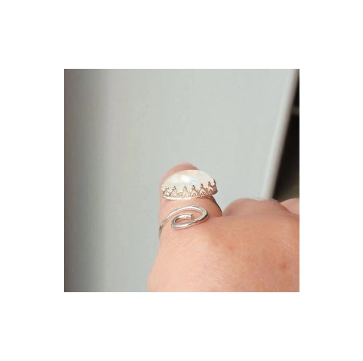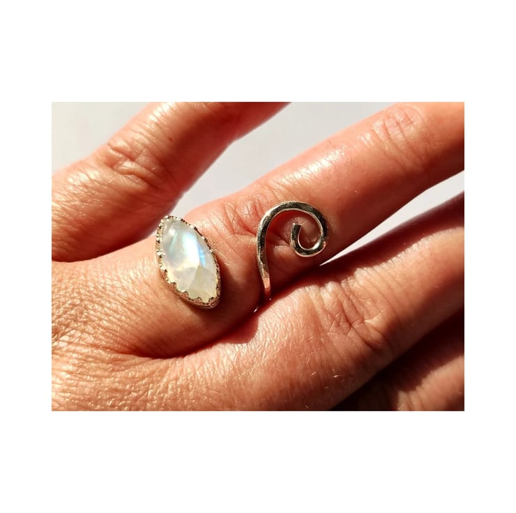Beautiful handcrafted adjustable ring in 999 fine silver and 925 sterling silver