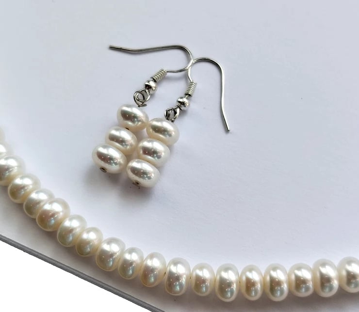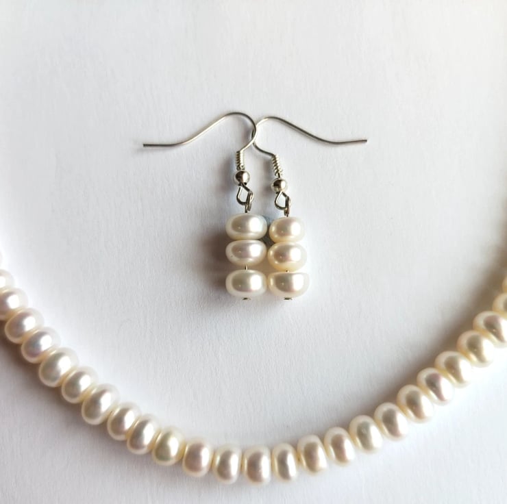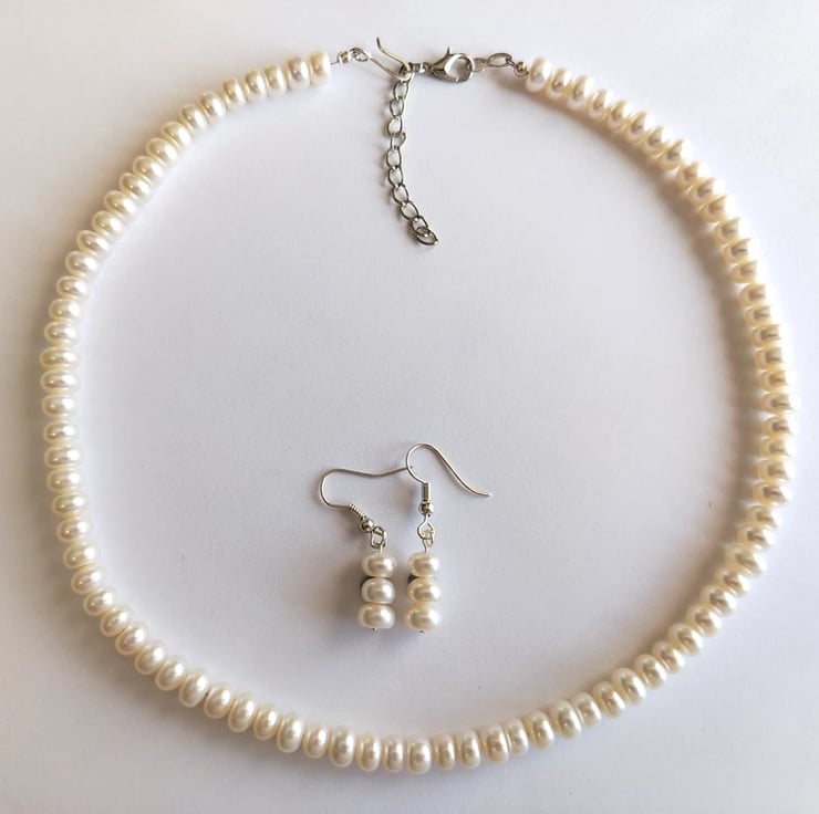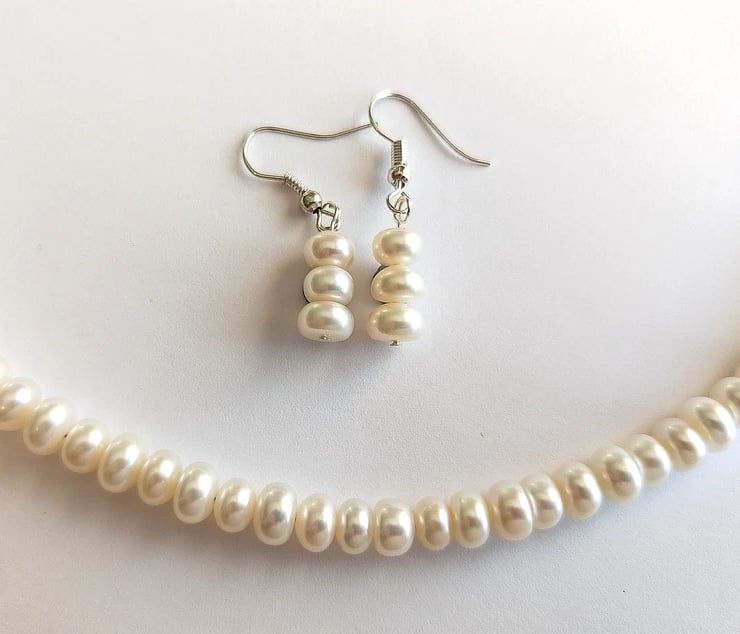 Cream Genuine Freshwater Pearl Handmade Necklace & Earrings Gift Set