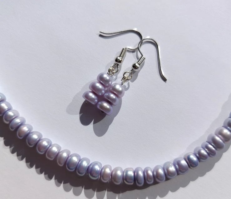 Lilac Freshwater Pearl Handmade Necklace & Earrings Gift Set