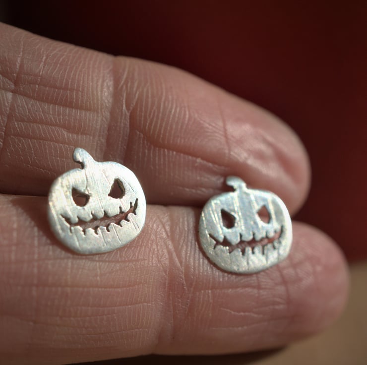 Eco silver stud earrings; hand drawn, hand sawn pumpkins!