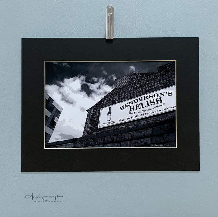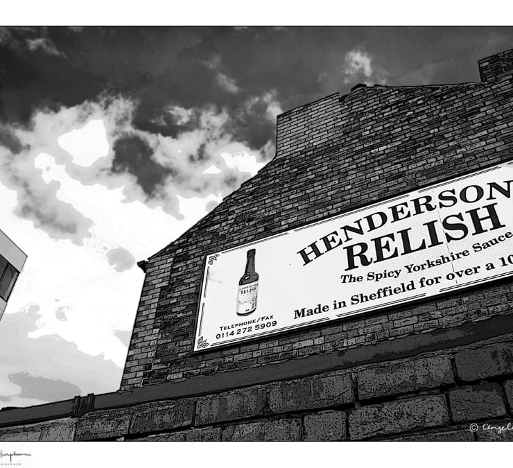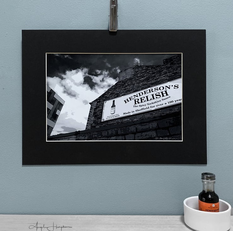 A Fine Art photograph of the ad for Henderson's Relish. One of a series my photographs of Sheffield Architecture. Printed on good quality photographic paper and mounted in poster black, complete with backing board ready to frame.
