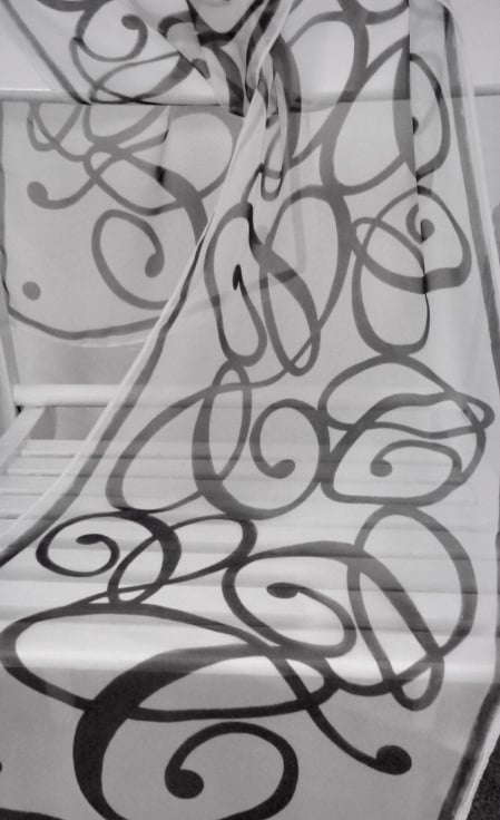 I love the feel of chiffon its light, but still has warmth. I wanted to create a personalised, yet easy to wear design that would go with all colours, and be suitable to wear as casual or smart.