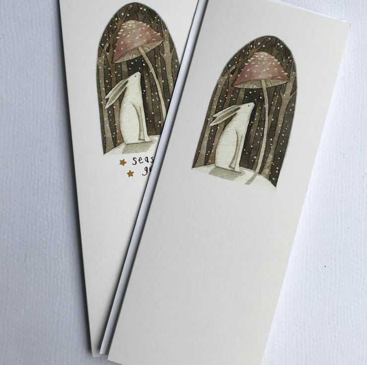 A 80 x 210mm card taken from an original artwork by Three Acorns and supplied with envelope. This design is suitable for Christmas or Winter birthday and is blank inside. It can also be blank on the front or personalised with any message.