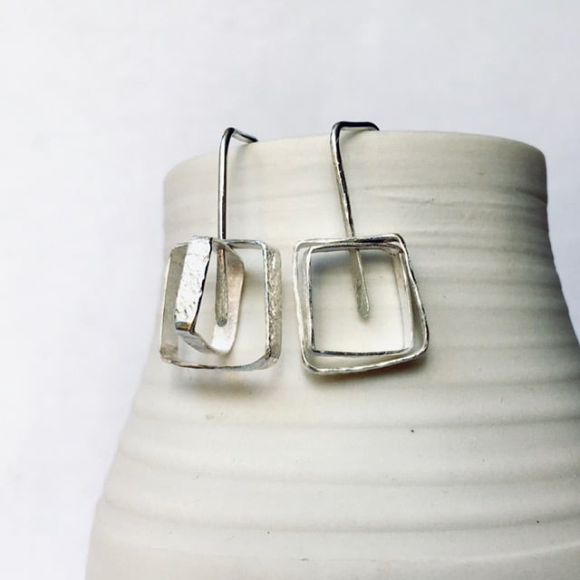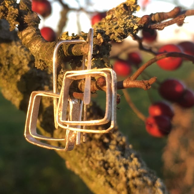 Ergonomic and pleasing to make, touch and feel these playful earrings rotate on a central minimal earwire. I hand forge each 'square' and carefully make the earwire so that the 'squares' appear to hang effortlessly around each other. I hope you enjoy them as much as I love making them :)