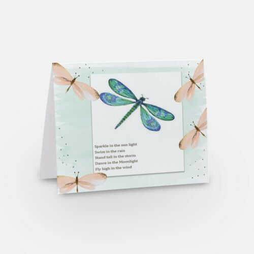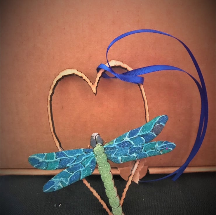 8cm Wood Open Heart With a Hand Painted Dragon Fly Painted in A blue Two Tone Paint With Silver Colour Lining . This Item comes in a sealed pack with a Quote Card