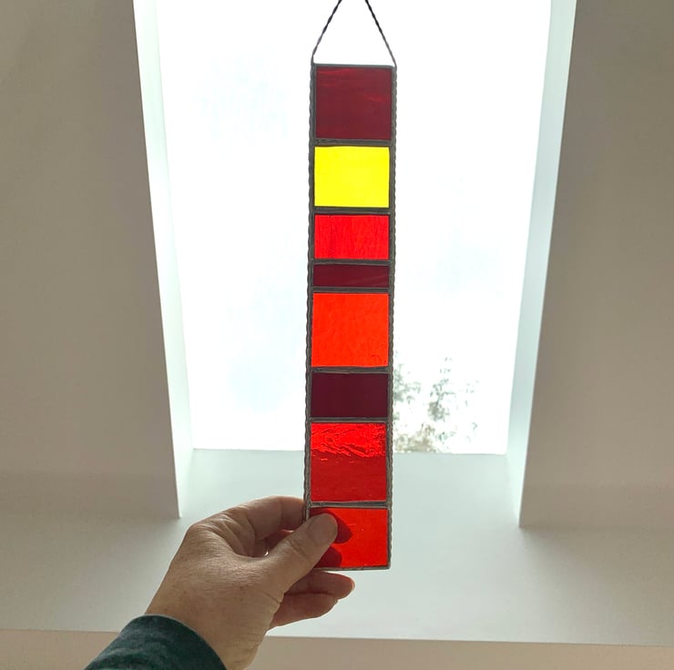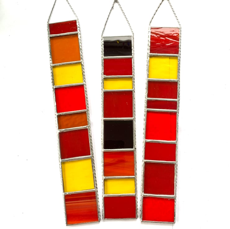 I have used three different types of red glass including a solid red and a streaky red glass, orange corella glass and yellow water glass. There are some lovely textures included in this selection.