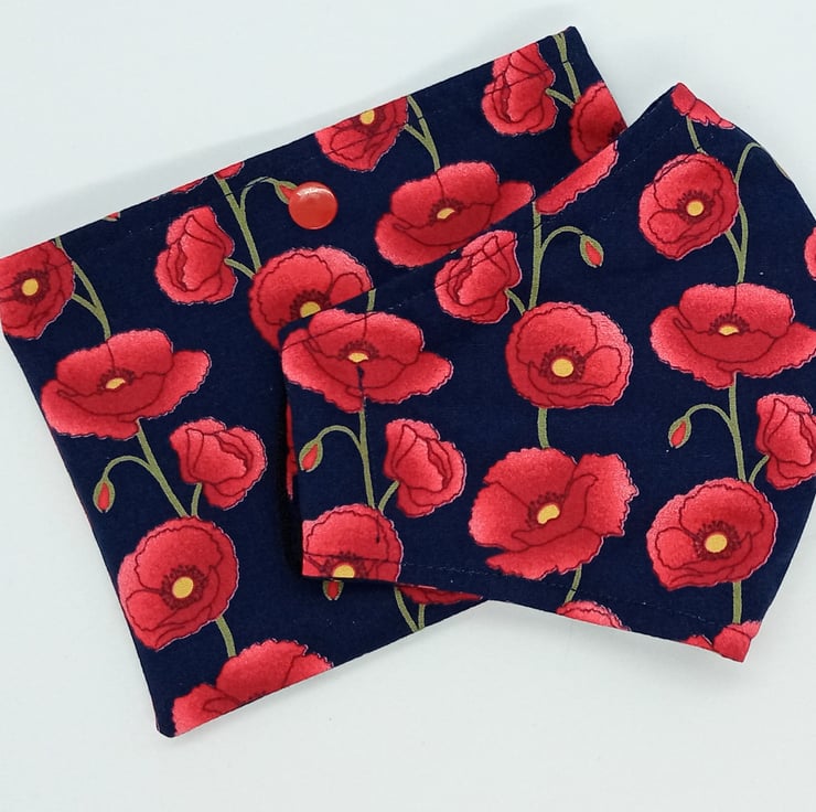 A face mask and pouch to store your mask while not in use. It is made from 100% cotton and should be washed regularly after use