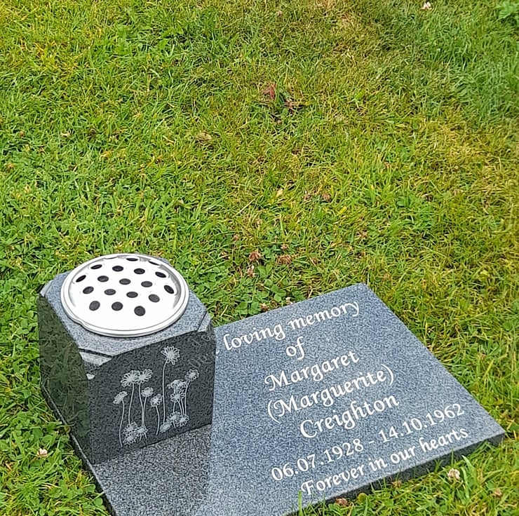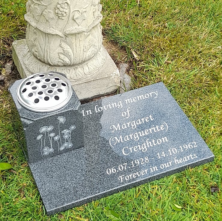 Precisely Laser Etched Directly into the Granite using our state of the art technology, for a fully weatherproof and high quality finish.