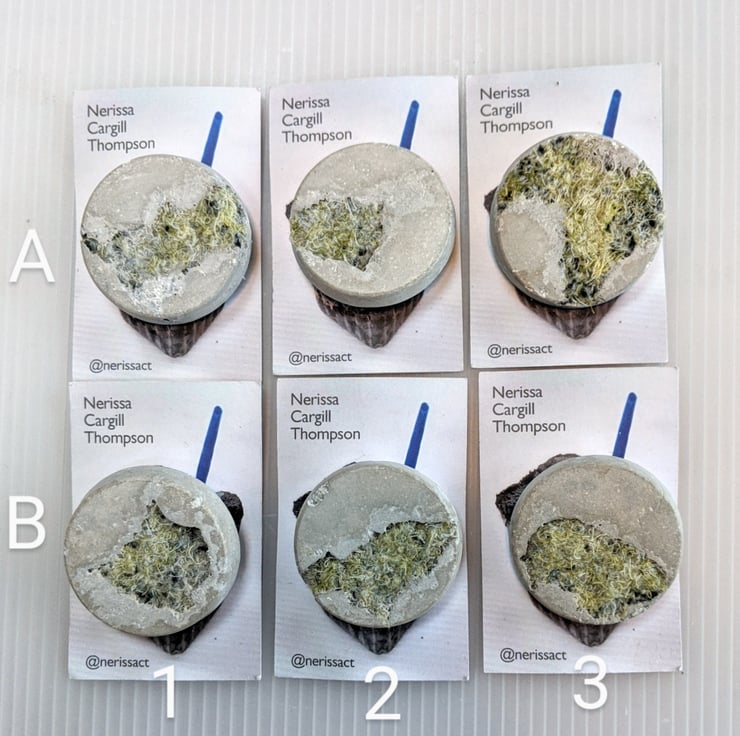 I create coastal inspired textures using a combination of embellishing and embroidery; blending a variety of recycled fabrics to create subtle variations in tone. These are stitched inside waste plastic to cast true to life pieces with cement giving a distinct contrast between the manmade structure of the packaging and the soft natural textures of the textiles.