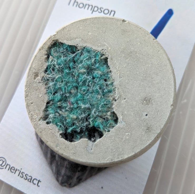 I create coastal inspired textures using a combination of embellishing and embroidery; blending a variety of recycled fabrics to create subtle variations in tone. These are stitched inside waste plastic to cast true to life pieces with cement giving a distinct contrast between the manmade structure of the packaging and the soft natural textures of the textiles.