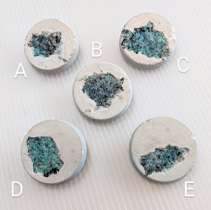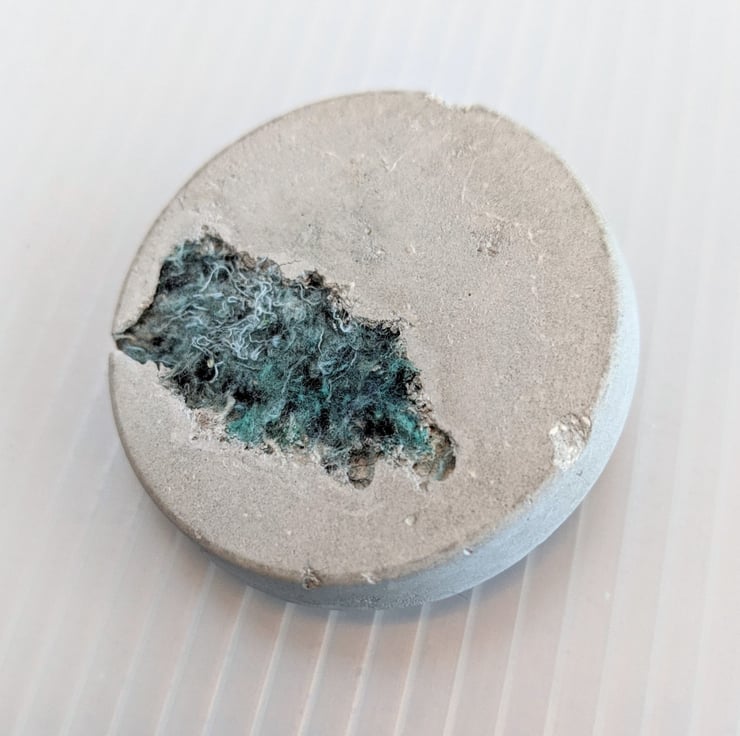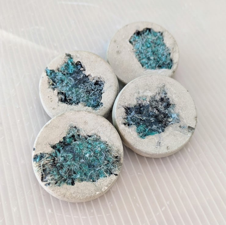 Aqua Blue Textile and Concrete Mixed Media Round 50mm Brooches