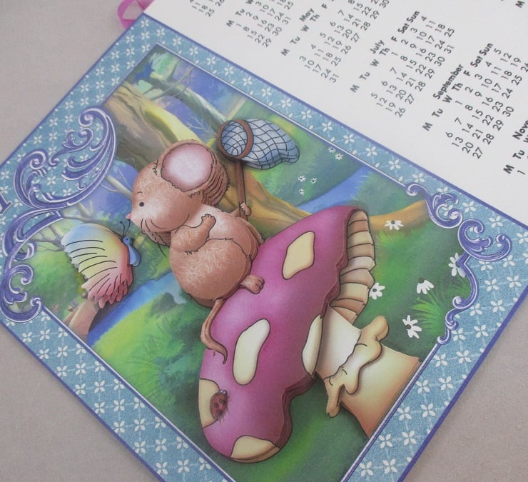 Handmade 2021 Wall Calendar, Cute Mouse on Mushroom,Decoupage,3D