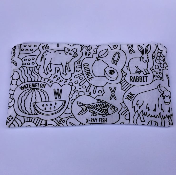 The pencil case has an alphabet design with a representation for the letters shown on the pencil case. A perfect gift idea!