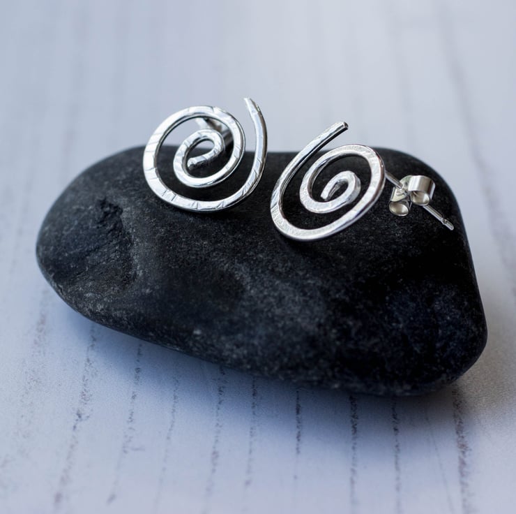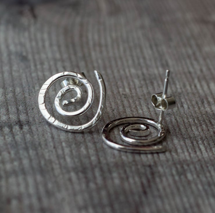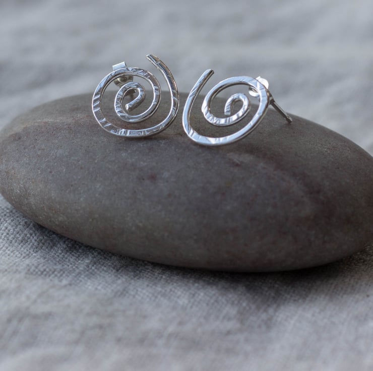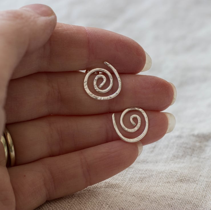 Simple spiral studs, handmade from 100% recycled Sterling silver wire.