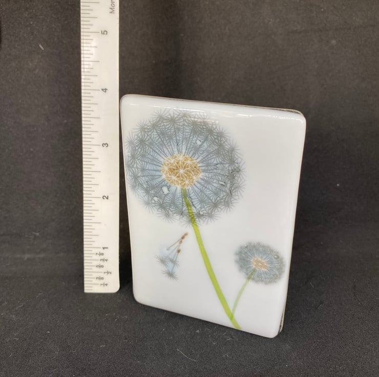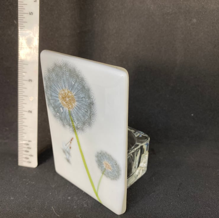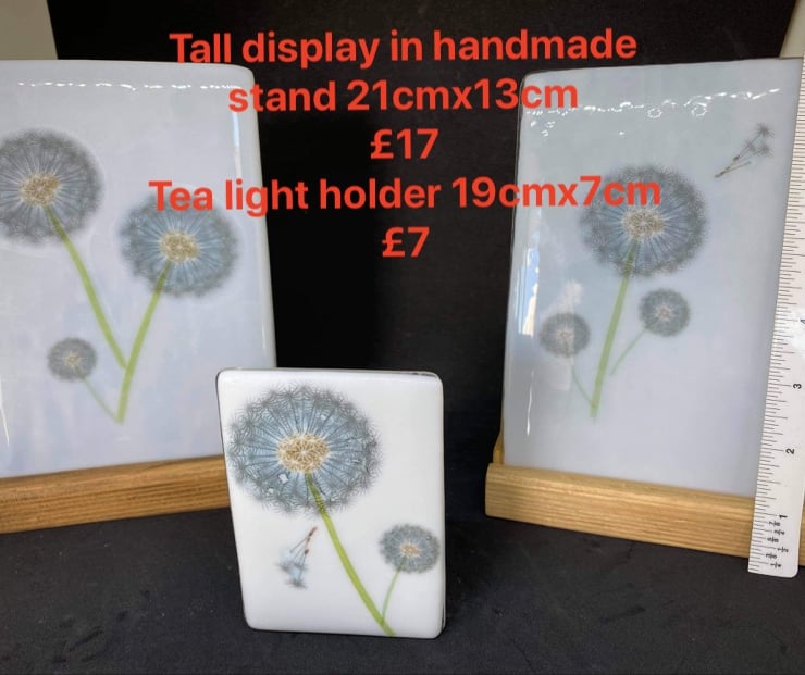 This very pretty dandelion tea light holder looks great both by day and also at night with a tea light in the holder behind the panel. Each piece is individually hand cut and fired in the kiln for up to 24 hours. The number of dandelion heads can be varied on request. Each piece is individual and may vary from the one in the photos