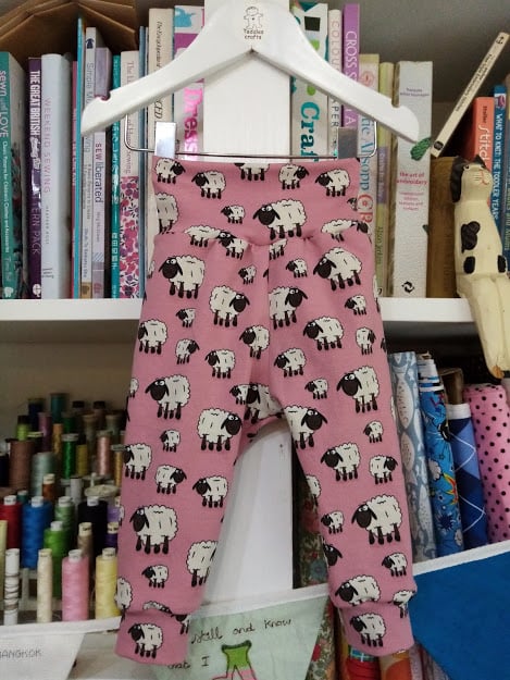 Soft and stretchy baby yoga pants. Hand made from soft cotton lycra jersey with a yoga band waist and ankle cuffs