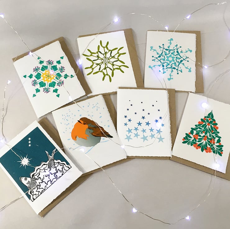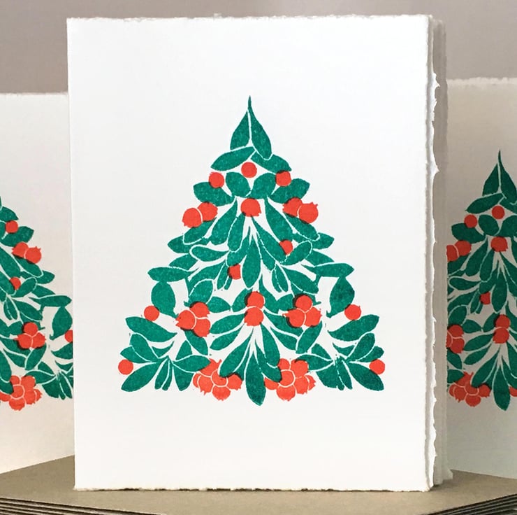 These are original HandCrafted, linoCut Cards, handprinted in a minimum of two colours, cards are blank inside with info on the back hand-set in letterpress, hand inked & printed on my ancient Press.