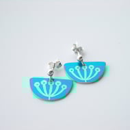 These leaf earrings are made from aluminium which I have dyed in orange and printed with a silver leaf print. I hand cut the leaf shapes using a piercing saw and file the edges to give nice clean lines and smooth edges. Finally, the leaves are domed slightly so that they catch the light nicely. The leaves measure approximately 27mm x 13mm and hang from sterling silver ear hooks.
