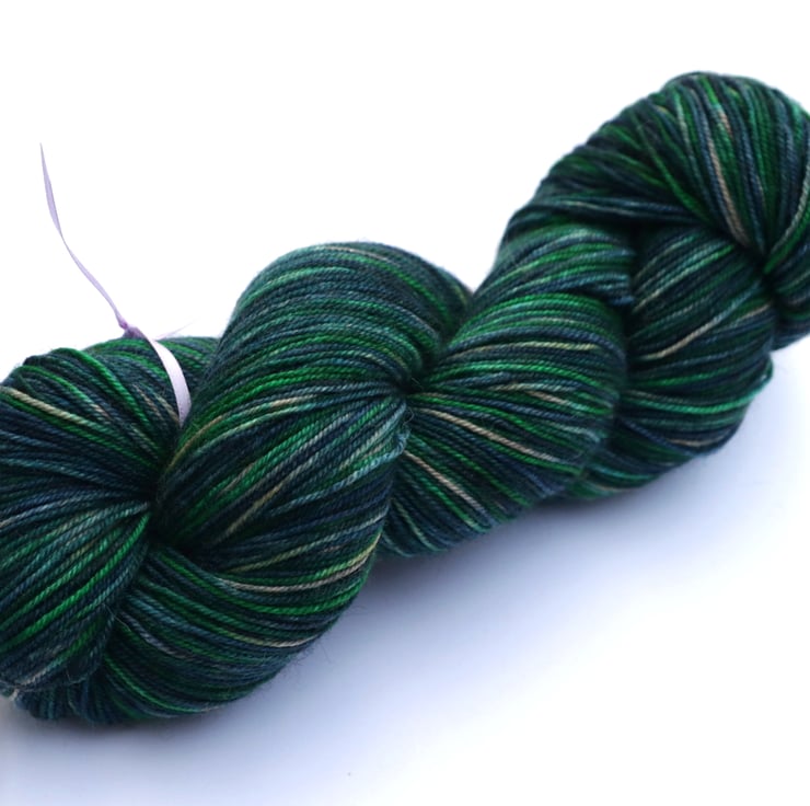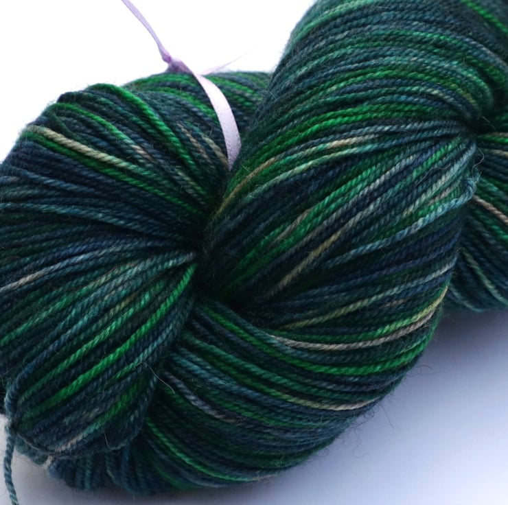 Green, navy blue, teal-blue and slate blue with pewter grey (undyed). This is a 4-ply weight yarn with a a versatile superwash merino base, with cosy, soft yak fibre and a little nylon for strength. The natural grey colour of the Yak gives the colours beautiful richness and depth. Photos taken and edited in bright natural light.