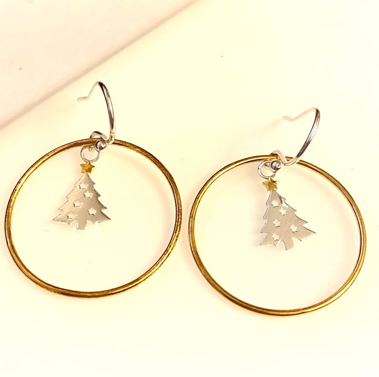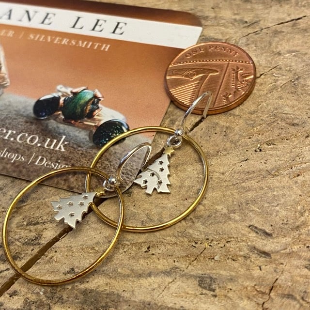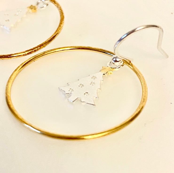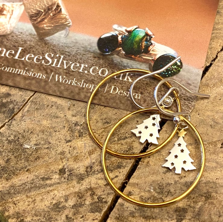 Silver & Goldplated silver Pine Tree cones tree earrings
