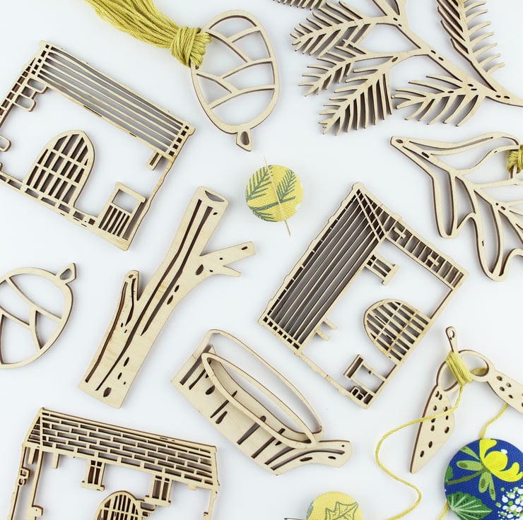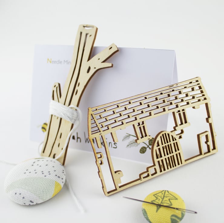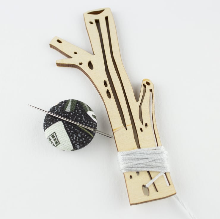 Wooden tree thread holder and magnetic fabric needle minder, designed to match my fabrics, they illustrate the beauty of the Yorkshire Dales where I live and work.