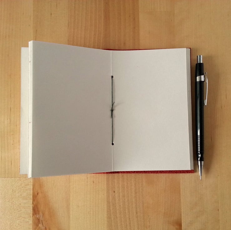 - There are 48 pages (96 sides) of white smooth cartridge paper (around 120gsm), hand bound in two sections.