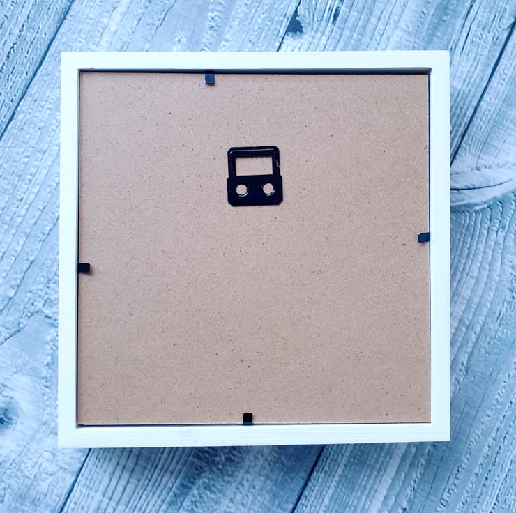 The rustic frame will come with glass measuring appropriately 19cm x 19cm. Photos were taken without glass to avoid reflections.
