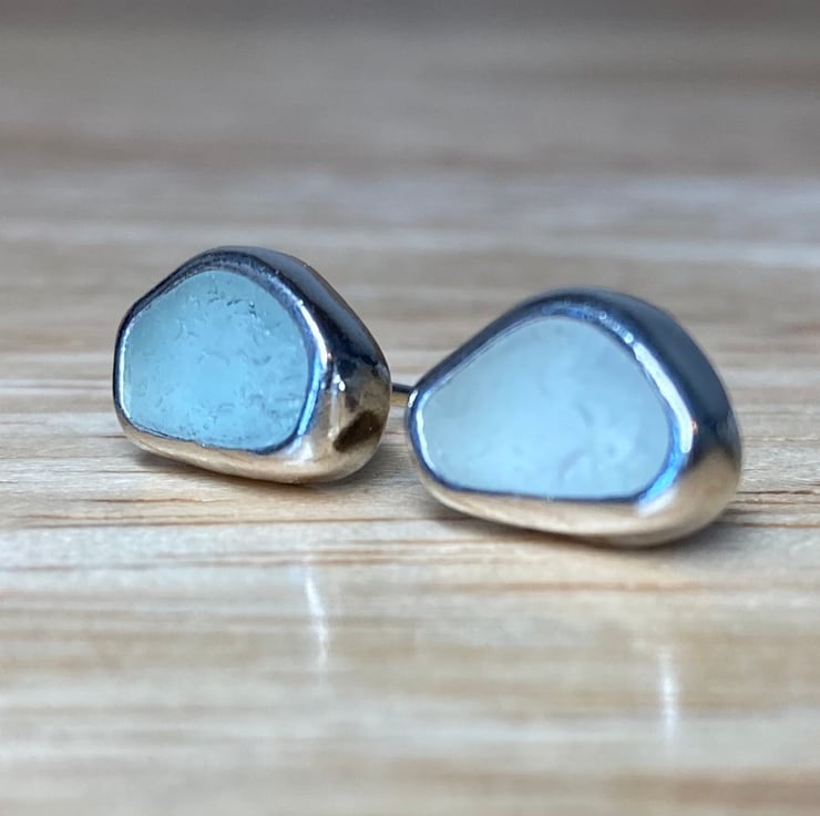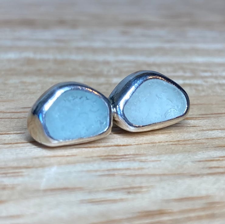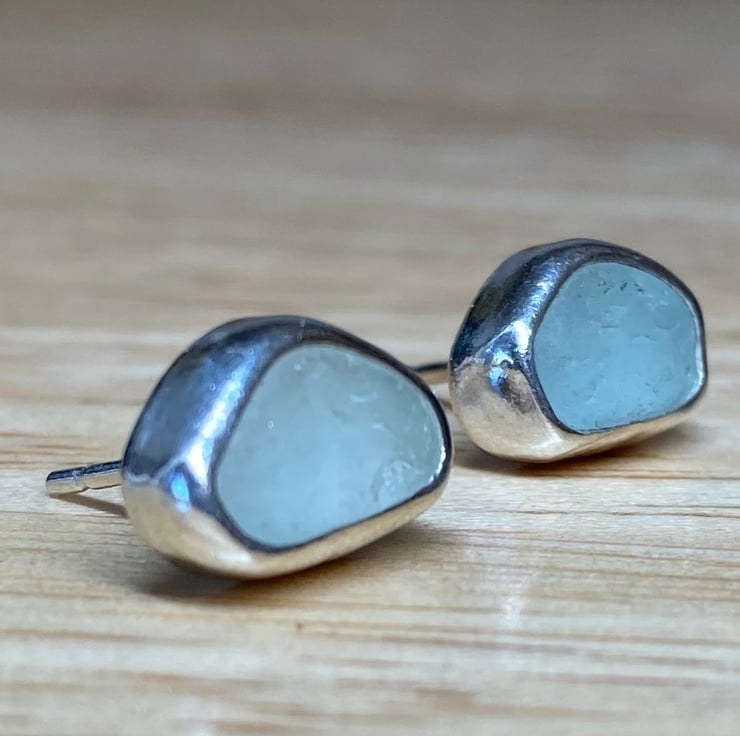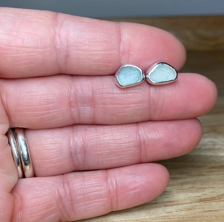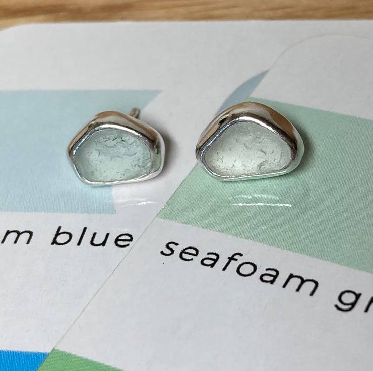 Gorgeous welsh seafoam green and blue sea glass and silver medium sized stud earrings, these beauties are sisters not twins!
